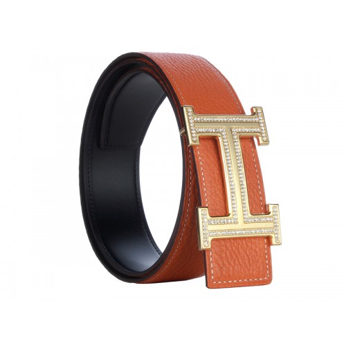 Hermès Togo bőr öv, arany H csattal, narancssárga gyémánttal és díszítéssel.