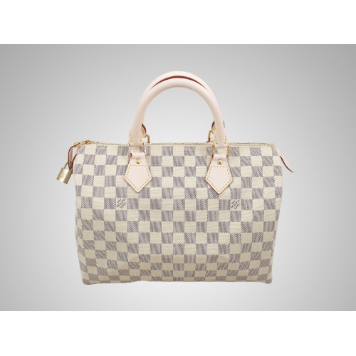 Klasszikus Speedy Damier Azur vászonának új változata szórakoztató és stílusos, egészen lenyűgöző kombináció egyedi vaníliakrém színével háttérként és sötét sötétkék mintával, amely tökéletes a tavaszi és amp; Nyár. It’ jelenleg elkelt & amp; várólistán az Egyesült Államokban.