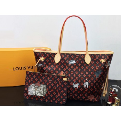 A klasszikus Neverfull táska ezen frissítése a “Catogram” téma a Cruise 2019 kollekcióból. A házi kedvenceik által ihletett Nicolas Ghesquière és a jól ismert stylist, Grace Coddington felhívta a Louis Vuitton&rsquo-t; technikai szakértelmét, hogy a Monogram vásznat vidám kutyák és macskák képeivel díszítse. Szórakoztató megjelenés egy ultrakényelmes, túlméretezett táskához.