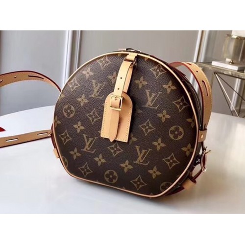 2018 ősz-télére Nicolas Ghesquière újragondolja a klasszikus kalapdobozt, mint az áhított Boite Chapeau leves kézitáskát. A Ház utazási öröksége által ihletett, rugalmas Monogram vászon kialakítás hosszú bőrszíjjal rendelkezik, amely megkönnyíti a testen vagy a vállon való átvitelt.