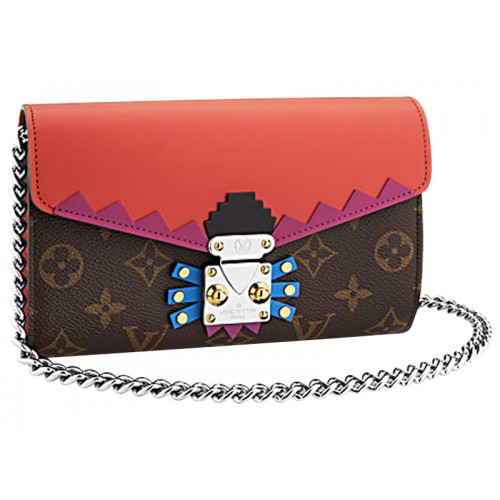 Játékos és feltűnő, a Monogram Totem téma párosítja a Louis Vuitton ikonikus Monogram vásznát élénk bőr díszítéssel. Ez a stílusos láncos pénztárca, amely a történelmi törzsek által ihletett S-zárral van kiegészítve, válltáskaként is viselhető.