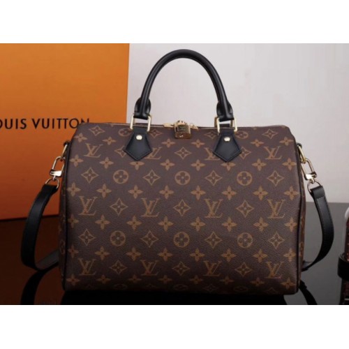 Louis Vuitton Monogram Vászon Speedy Bandouliere 30 Fekete Bőr Díszítéssel