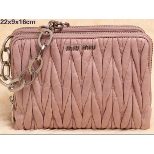 Miu Miu Mázas Matelasse Bőr Mini Válltáska Világos Rózsaszín
