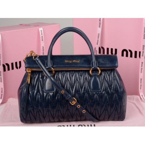 Miu Miu Mázas Matelasse Bőr Cipzáras Táska Kék