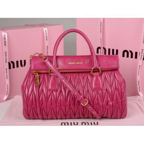 Miu Miu Mázas Matelasse Bőr Cipzáras Táska Élénk Rózsaszín