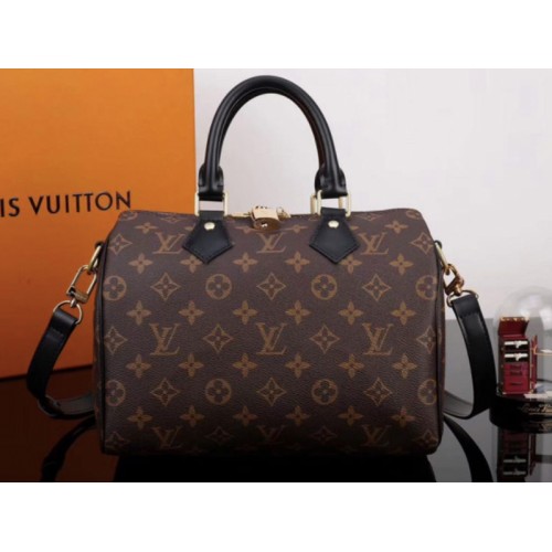 Louis Vuitton Monogram Vászon Speedy Bandouliere 25 Fekete Bőr Kárpitozással