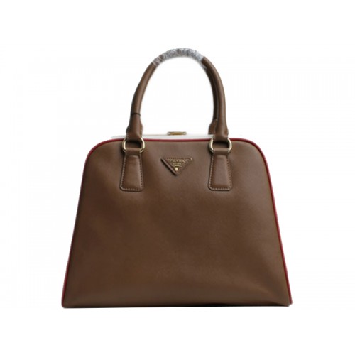 Prada Saffiano Keretezett Felső Fogantyús Táska Kávé