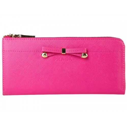 Prada Saffiano Cipzáras Pénztárca Masni Részletekkel Élénk Rózsaszín