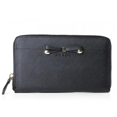 Prada Saffiano Zippy Pénztárca Masni Díszítéssel Fekete