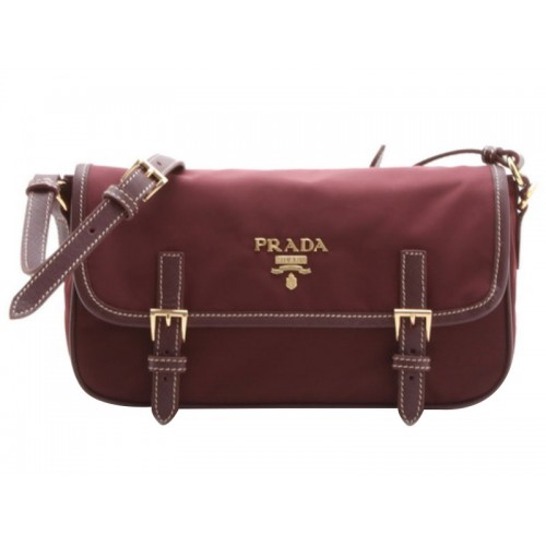 Prada Tessuto Bandoliera Crossbody Messenger Bag bordó