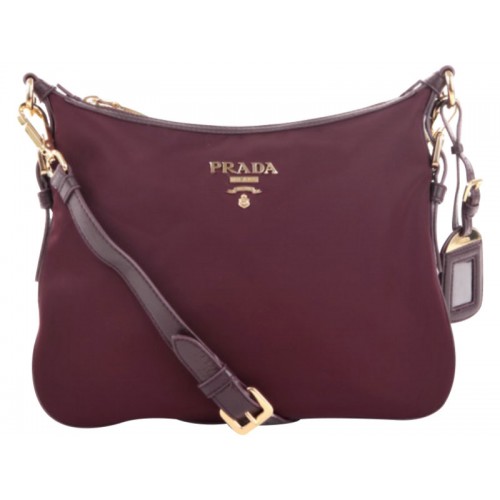 Prada Tessuto Nylon Bőr Díszítésű Sling Táska Burgundia
