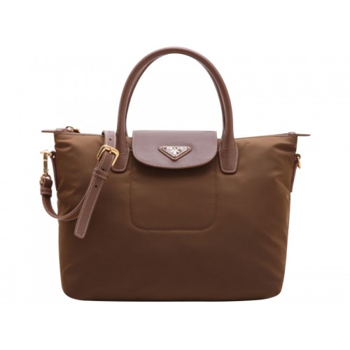 Prada Tessuto Nylon Bőr Díszítésű Táska Barna