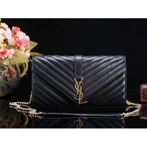 YSL Közepes Monogramos Táska Fekete Báránybőr Steppelt Bőr