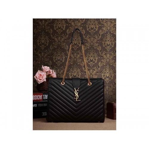 CLASSIC SAINT LAURENT SHOPPER TOTE FÉM LÁNCCAL, BŐR DUPLA FOGANTYÚKKAL ÉS EGYMÁSHOZ RÖGZÍTŐ YSL SIGNATURE CSAT ZÁRÁSA.