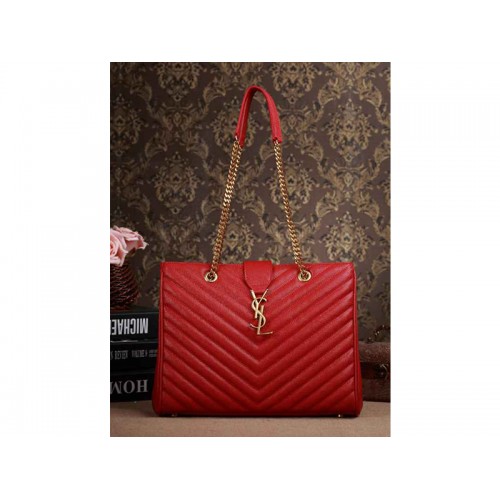 Yves Saint Laurent klasszikus monogramos bevásárlótáska rúzsvörös szemcsés de poudre texturált matelasse bőrből