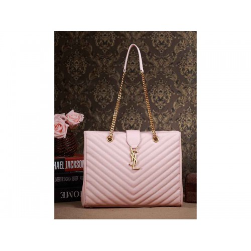 Yves Saint Laurent klasszikus monogram bevásárlótáska Pink Grain de Poudre texturált matelasse bőrből